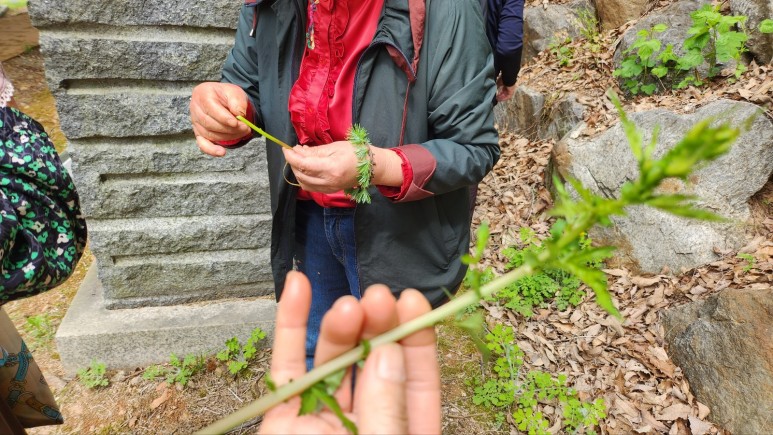 국수나물, 이 줄기를 먹으면 갈증이 가신다고 한다. 맛을 보니 촉촉하고 향긋하다.