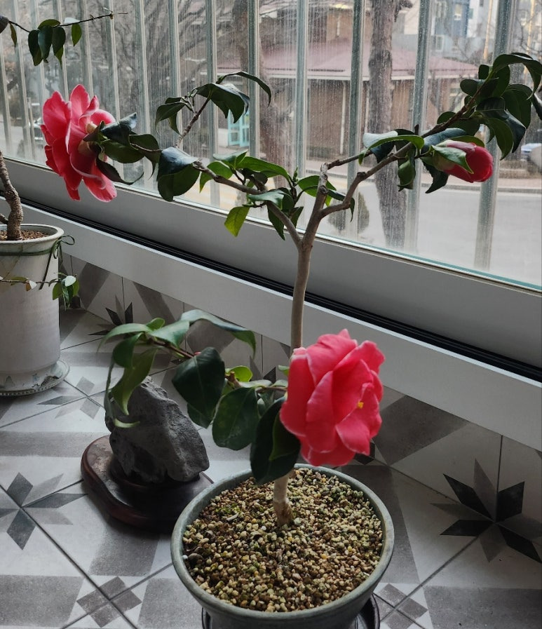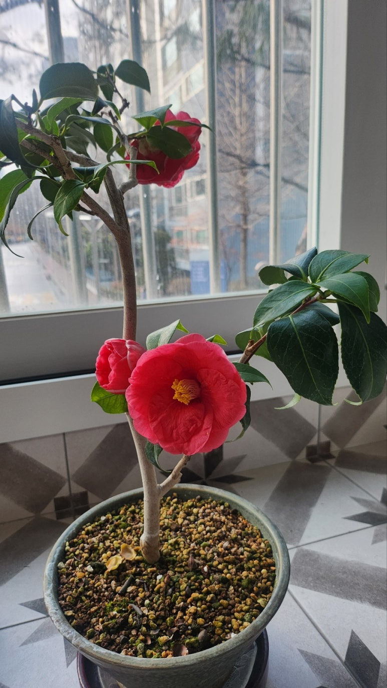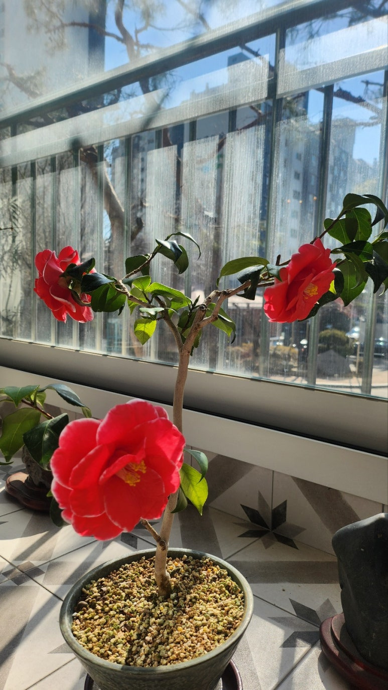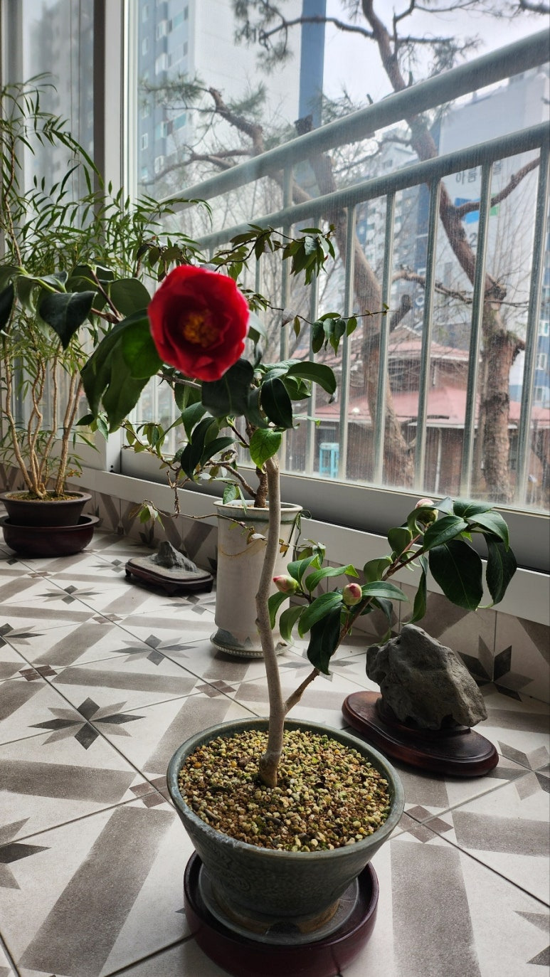 동백이 제 성질을 버렸다. 한창 이쁠때 낙화해서 또 한번의 생을 살아야하는데..